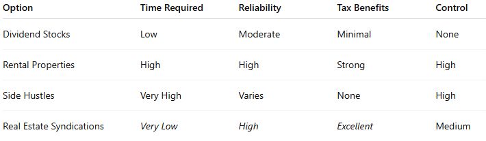 Every dollar you invest in passive real estate income is a vote for freedom over burnout, for peace over hustle.